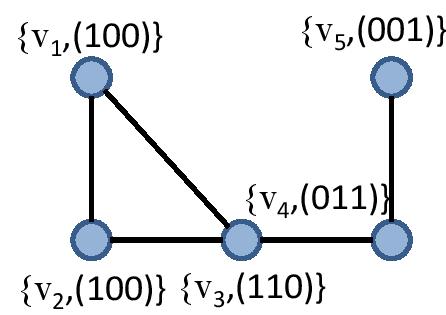 - Binary vertex features. An agent can either be interested or not in each out of three news categories business, entertainment, sports. Each interest is represented by a binary feature. For instance, in the figure below,