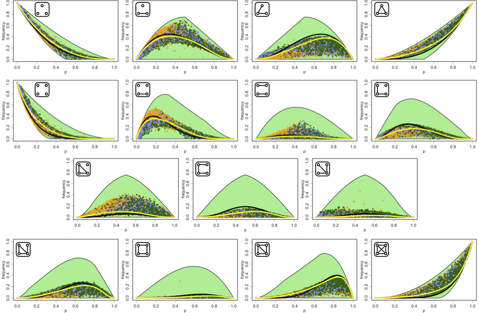 values. This suggests that there are not large bipartite cliques on these networks. Indeed, Ugander et al. studied how frequently certain small subgraphs appear in real-world networks.