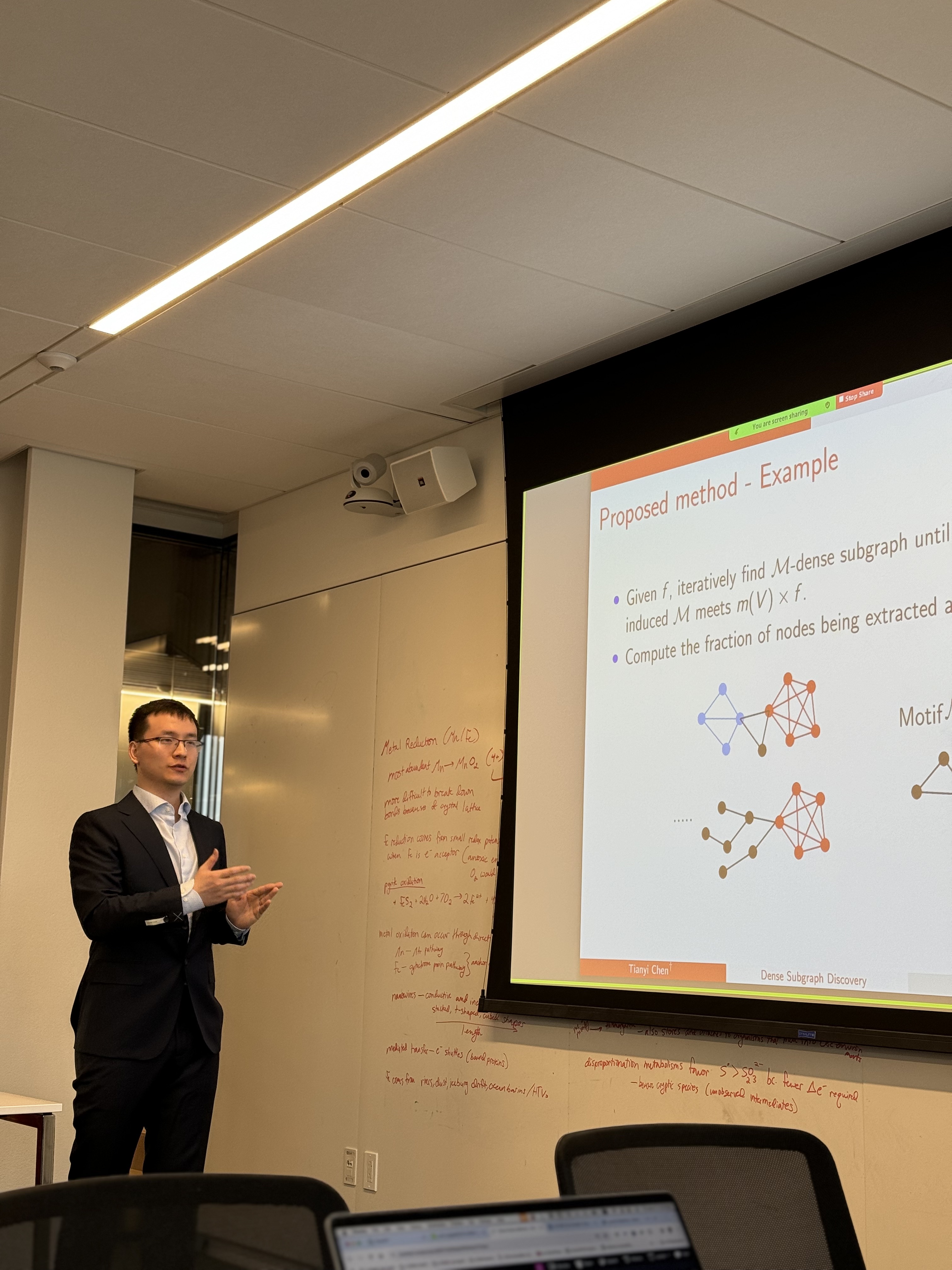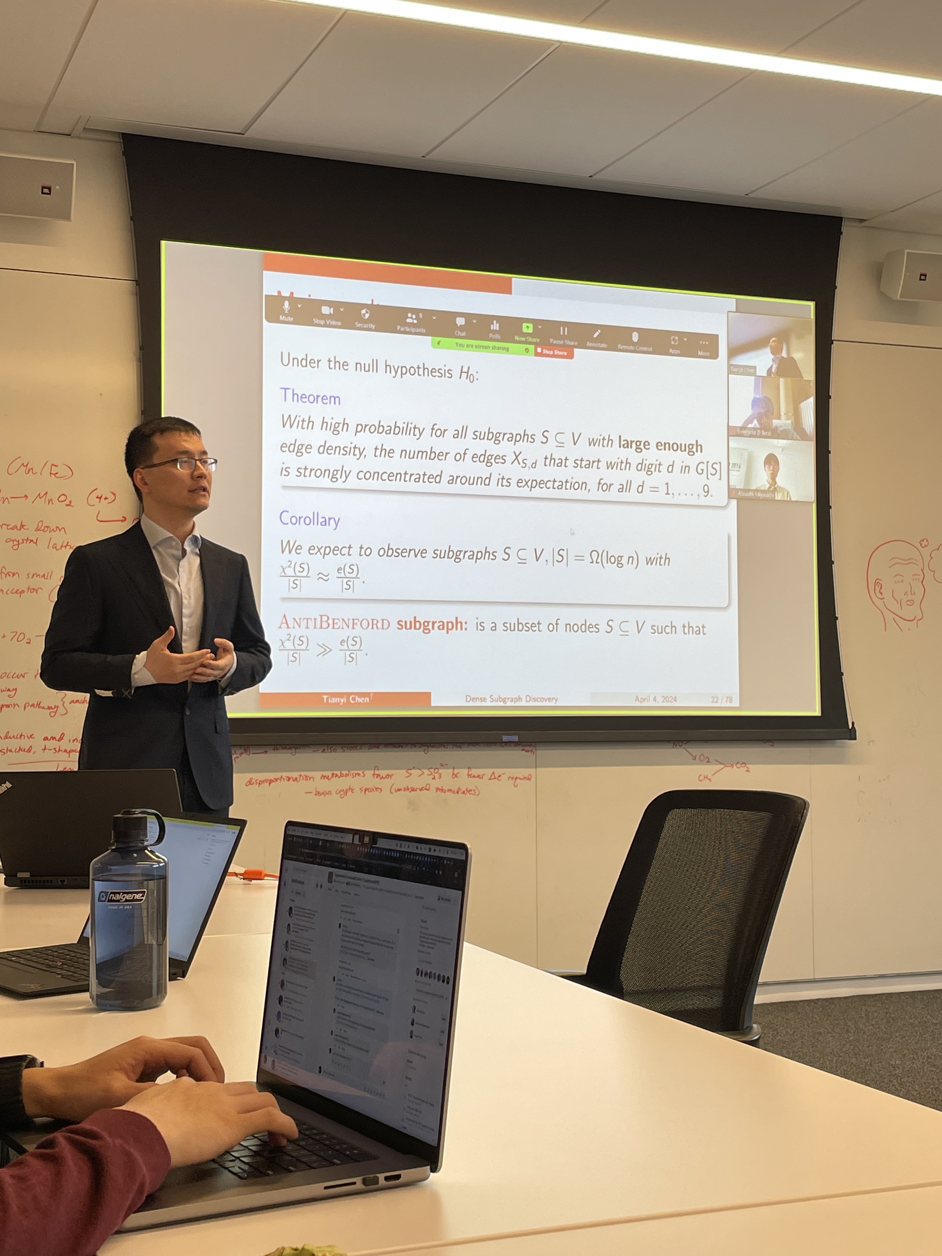 My student Mr. Tianyi Chen defended yesterday successfully his thesis titled as “Dense Subgraph Discovery: Novel Algorithms and Applications”. The committee was composed of Prof. George Kollios, Prof. Evimaria Terzi, and Dr. Atsushi Miyauchi. Tianyi focused on addressing dense subgraph discovery issues in contemporary graph datasets, including uncertain graphs, multilayer networks, and graphs containing opinion data, among others. Tianyi made a significant impact at BU, both as an outstanding PhD student and as an exceptional teaching fellow. I am delighted that he is already embarking on a machine learning engineering position in Celonis, a company that specializes in process mining and process excellence and has been recognized as a leader in the process mining market by industry analysts. Some photos from the defense for the record follow.