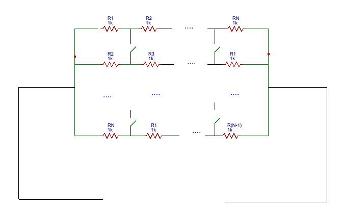 . by the applying Rayleigh’s monotonicity principle between the following circuit and the one obtained where we close all switches.